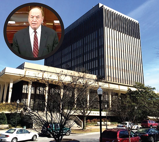 “MUCH NEEDED FACILITY’ – – Huntsville Mayor Tommy Battle commended (UPPER, LEFT) Alabama Senator Richard Shelby for his leadership in the Congressional appropriations process to secure funding for programs that benefit national defense and federal activities in Alabama, including the construction of a $110 million federal courthouse in Huntsville. “The federal courthouse, a legacy project for Huntsville, would not have been possible without the leadership of Senator Richard Shelby,” said Mayor Tommy Battle. “He has worked diligently for decades to secure this much-needed facility for Huntsville to serve North Alabama.”