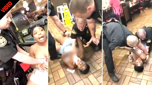 When Chikesia Clemons dining at a Waffle House refused to pay 50 cents extra for plastic utensils, she ended up tackled on the ground by Alabama police officers, according to the woman’s stepfather and recorded video of the incident.