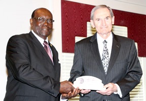 (RIGHT) Dr. Jimmy E. Jackson, pastor of Whitesburg Baptist Church addressed the Golden Class attendants during the President’s Community Breakfast. Standing (LEFT) is AAMU president, Dr. Andrew Hugine, Jr.