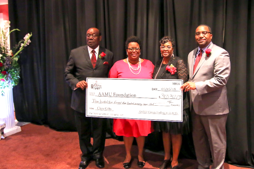 (Above, left – right): President Andrew Hugine, Jr., Susan Eason, Sandra S. Stubbs and Archie Tucker II, vice president for marketing, communication and advancement.