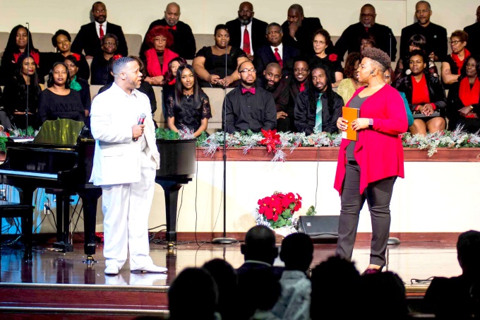 In the play, “Theatre director, Prentice, played by Vineke Richardson, in her effort to produce a “streamlined” Christmas play at her church, is involuntarily taken on a journey to discover the true reason for the season,” explained Danita Jones, artistic director of Productions by Danita Jones, who wrote and directed the stage show.