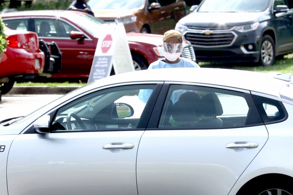 VARIOUS CITIES, – MARCH 23: Exterior view of the Baptist Health Coronavirus Care Clinic on March 23, 2020 in Montgomery, Alabama. Medical staff are administering tests in drive-thru clinics in order to preserve social distancing throughout the United States during the COVID-19 pandemic. (Photo by Taylor Hill/Getty Images)
