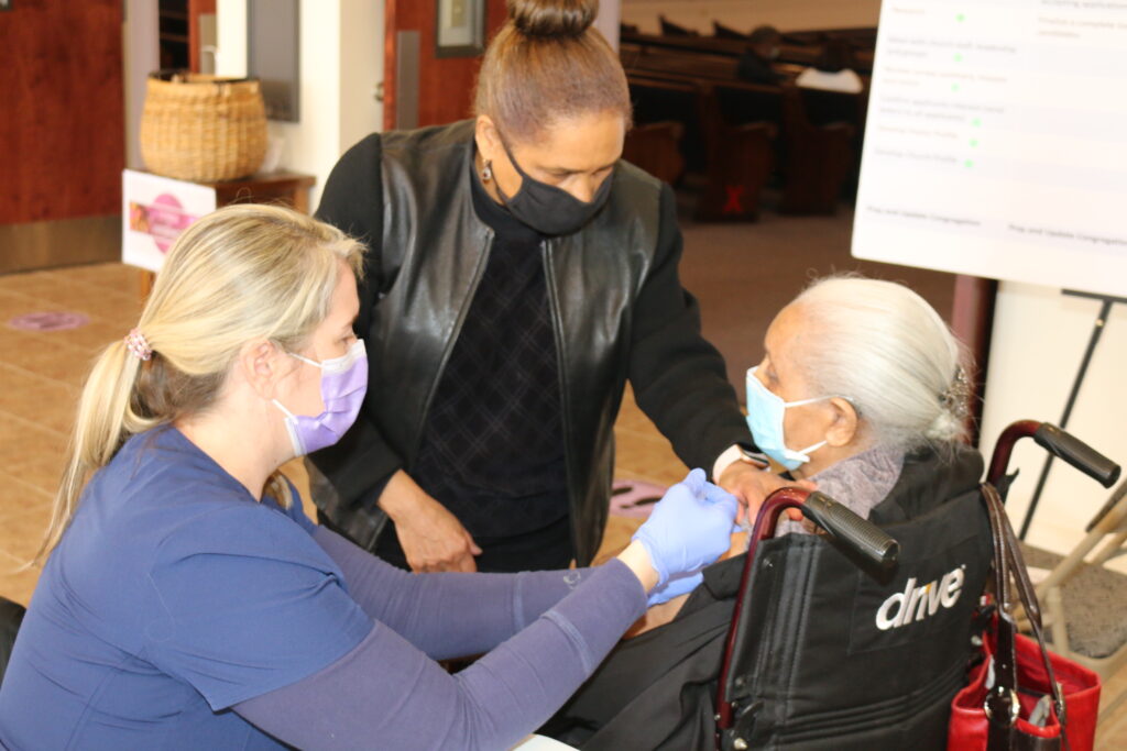 Huntsville’s Progressive Union Church was in a group of churches that received doses of the Pfizer COVID 19 vaccines from Huntsville Hospital. The church received 50 doses on Tuesday, March 2, with priority being given to the church’s Child Development Center employees, after that the remaining doses were available to members of the church who were eligible. Progressive Union was honored to have their oldest member, and the only surviving founding member of the church, to receive a vaccine. Mother Georgia Mae Lacey Lanier, who will be 103 years old on April 15 of this year, received one of the doses. Mother Lanier is the only surviving member of Progressive Union, which was founded in 1947. She was escorted to the event by her daughter, Mary Lanier Curry, a member of Progressive Union. Mother Lanier’s son, Everett is also a member of the church along with her grandchildren, great grandchildren, and several other relatives. Those receiving the doses on Tuesday, March 2, will return on Tuesday, March 23 for their second dose. Progressive Union is blessed to have Mother Lanier and to have her leading the way for our church. The church extends a thank you to Huntsville Hospital for the vaccines and their support in administering the vaccines. The event was held at the Progressive Union Sanctuary, located at 1917 Brandontown Road, Rev. Joe Stevenson is the interim pastor.