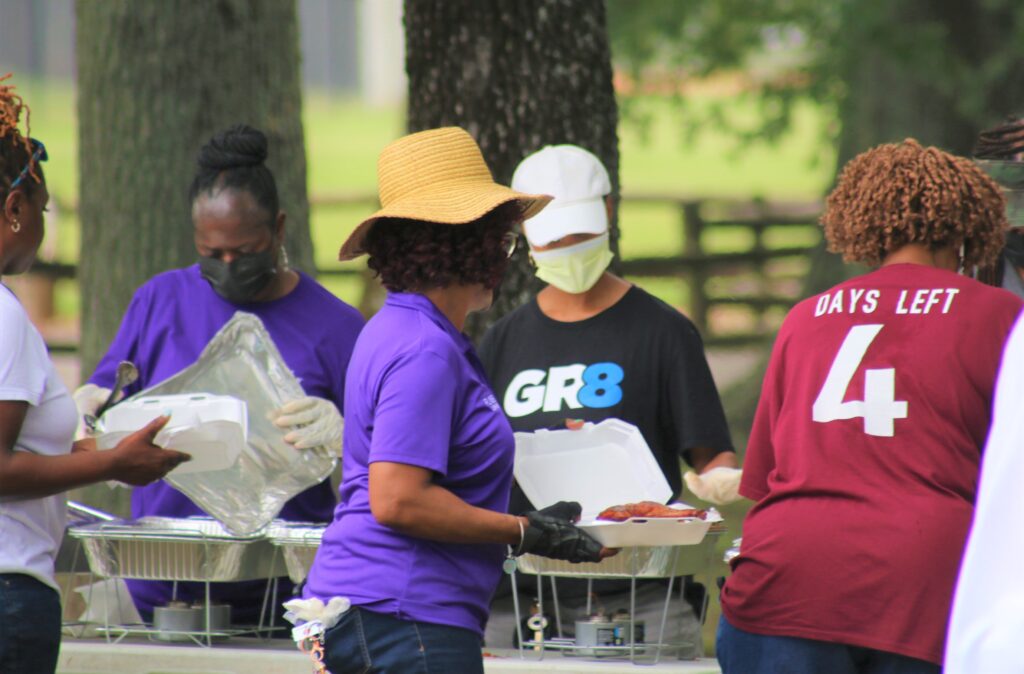 Progressive Union Missionary Baptist Church, in conjunction with the North Alabama Coalition for the Homeless, Hopewell Missionary Baptist Church, Heal for Real Ministries, Dependable Hands Ministry and other volunteers teamed up to provide meals, clothing and toiletry items for all who came by Brahan Spring Park Pavilion Five on Saturday, June 12, 2021, 11:00 a.m. to 1:00 p.m. The outreach is a yearly event that was not held in the usual way in 2020 due to the COVID pandemic. Those who served as volunteers not only served meals and provided clothing, they also were available to pray with those who requested prayer. For those who could not get to Brahan Spring, to go plates were prepared and delivered to a couple of the homeless camps in Huntsville. Thunder and lightning toward the end of event caused an early shutdown. A big thank you to all who donated their time and energy to make this event possible.