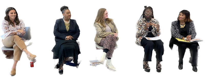 Moderated by LRC Library Specialist Chassity Burns, the five-woman panel included (l-r) AAMU English Instructor Theresa McWilliams-Wessels; WJAB-FM 90.9 Program Director Erica Fox Washington; AAMU Theatre Director Jill Coon; TV producer Shanika Wright; and Decatur artist and museum founder Frances Tate.
