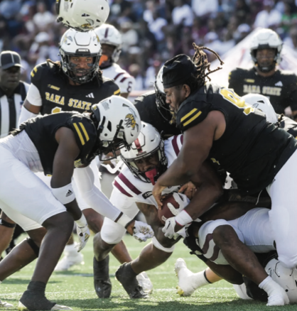 Alabama A&M drove to the Alabama State 30 and Jayden John attempted a 50-yard field goal that was blocked. Burgess scooped up the loose ball and returned it for the score.