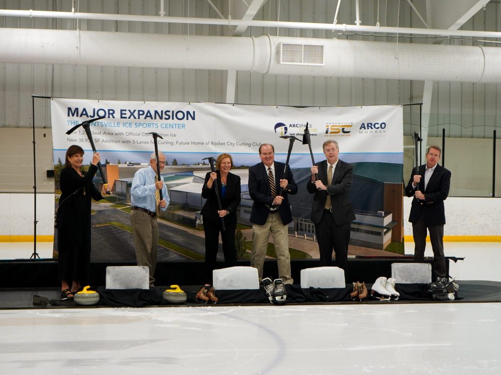 HUNTSVILLE, Ala. — Pickaxes replaced ceremonial shovels as city leaders and Ice Sports Center (ISC) executives broke through blocks of ice to mark the start of a transformative expansion project at Huntsville’s Ice Sports Center.