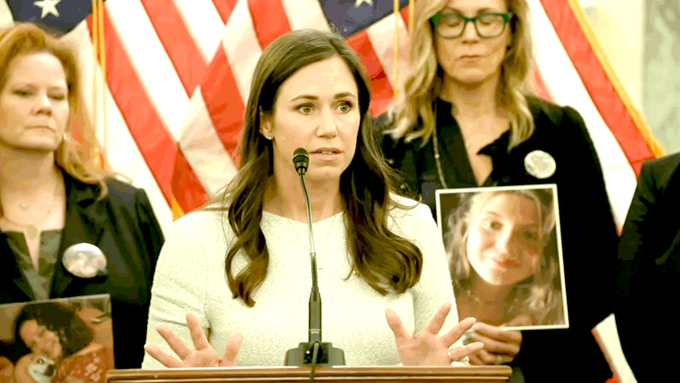 U.S. Sen. Katie Britt, R-AL, speaks at press conference introducing GUARD Act to Protect Minors From AI Chatbots. Wednesday, Oct. 29. 2025.