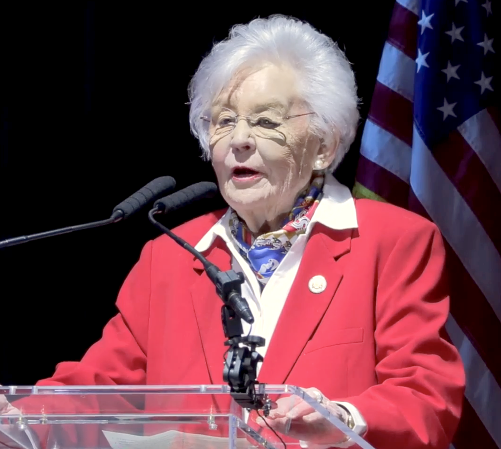 (L-R): Alabama Governor Kay Ivey and Huntsville Mayor Tommy Battle and celebrate Eli Lilly’s $6 billion investment in North Alabama, the largest private industrial project in state history. (Screenshot: City of Huntsville)